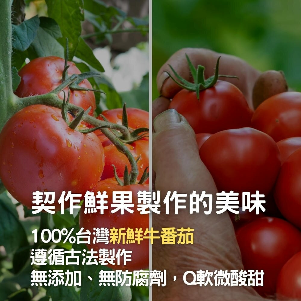 採用古法蜜煉,再以低溫慢烘的方式,保留番茄的果酸與香氣,避免高溫破壞營養與風味。