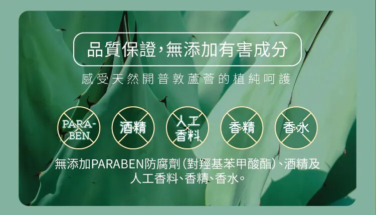 •無添加PARABEN防腐劑(對羥基苯甲酸酯)。