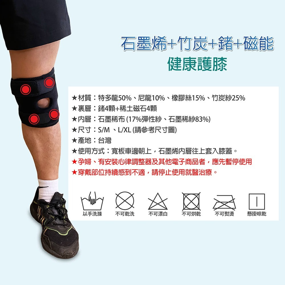 【菁炭元素】石墨烯+竹炭+4組鍺+稀土磁石能量健康護膝*1只