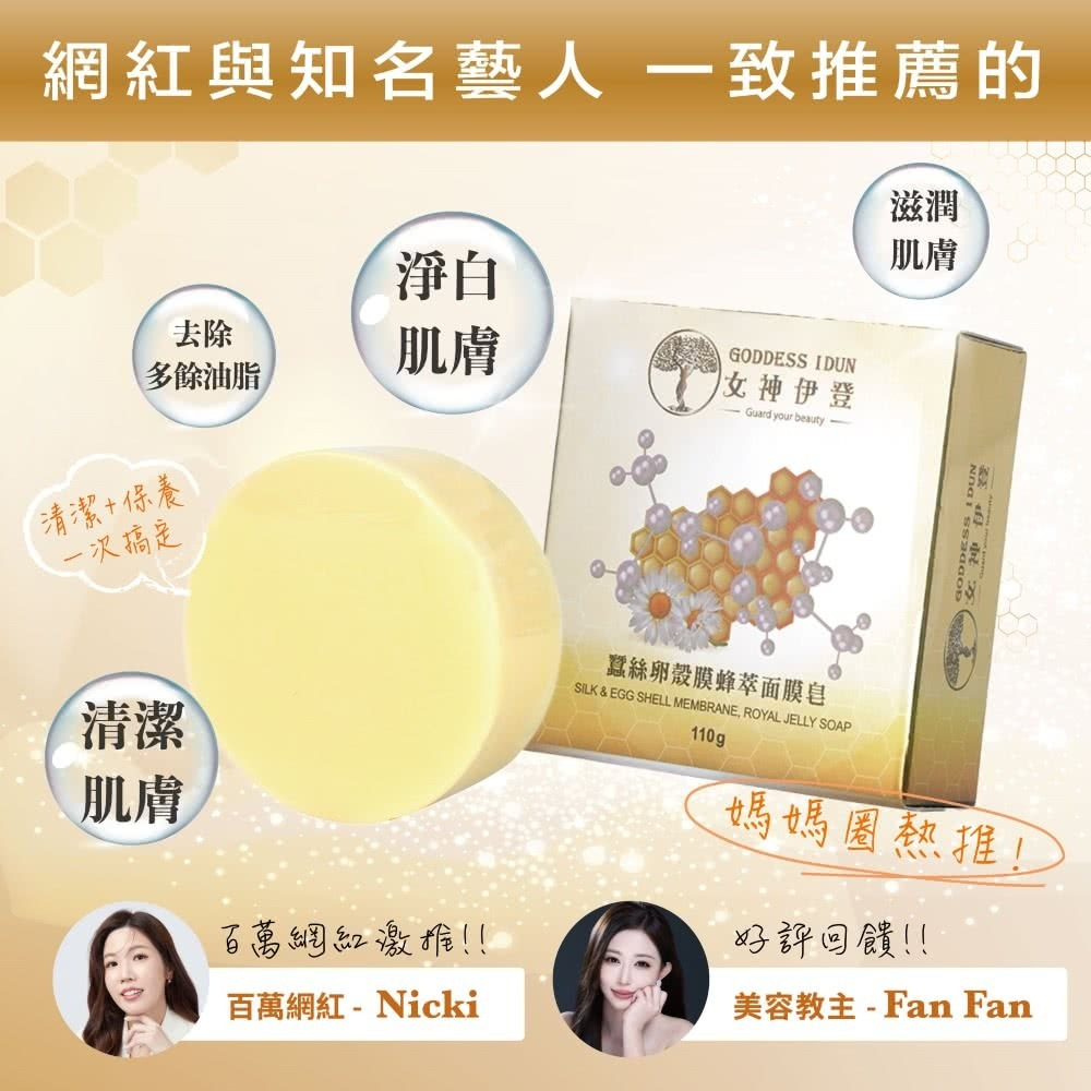 女神伊登 蠶絲卵殼膜蜂萃面膜皂8入