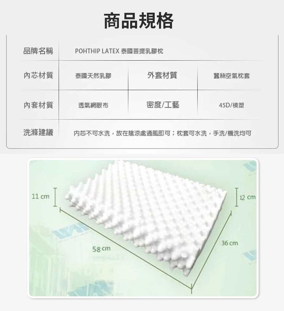 ◎內芯材質:泰國天然乳膠 ◎內套材質:透氣網眼布 ◎尺寸:58(W)x36(D)x12(H) cm ◎產地:泰國