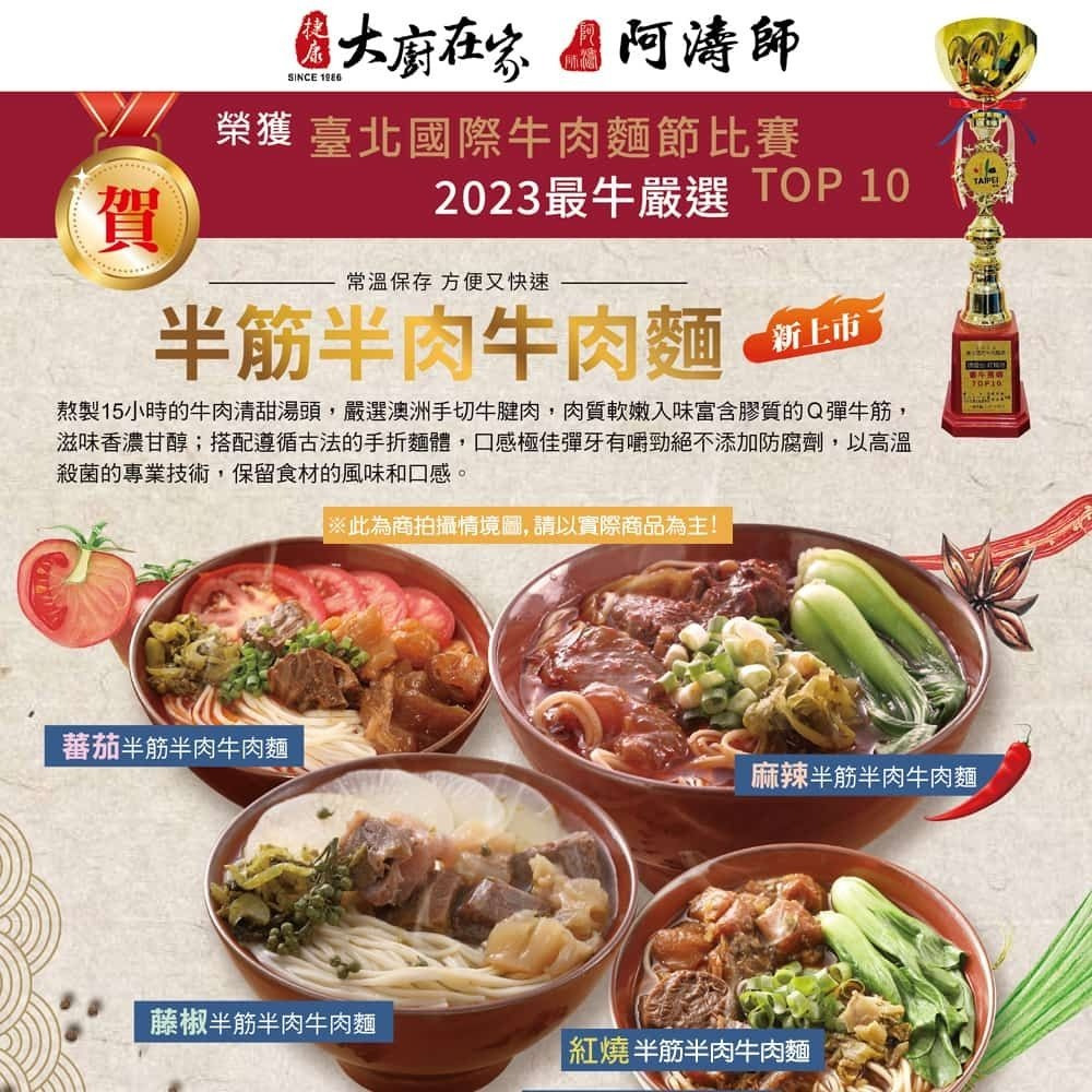 《大廚在家》半筋半肉紅燒牛肉麵(430g)+半筋半肉番茄牛肉麵(500g)各2盒 |