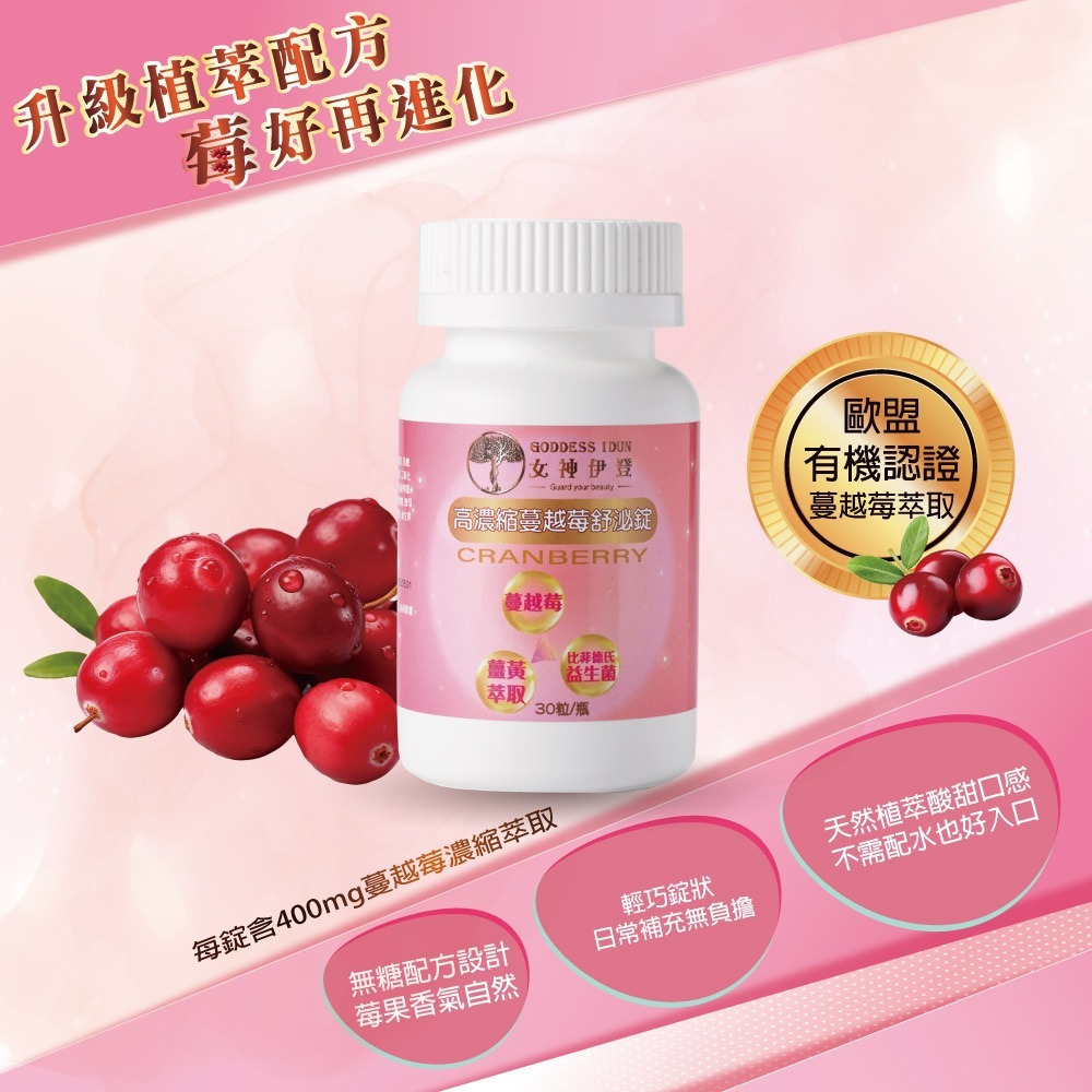 女神伊登 高濃縮蔓越莓舒泌錠2瓶(30錠/瓶)