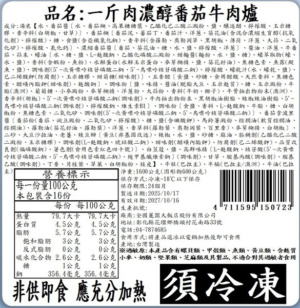2.商品品名:濃醇番茄一斤肉牛肉爐