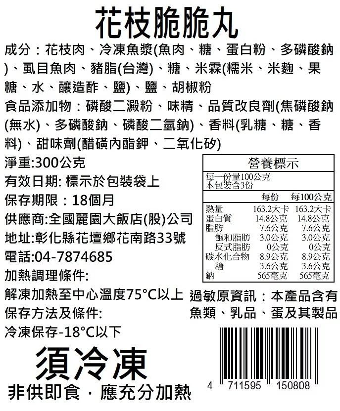 2.商品品名:花枝脆脆丸