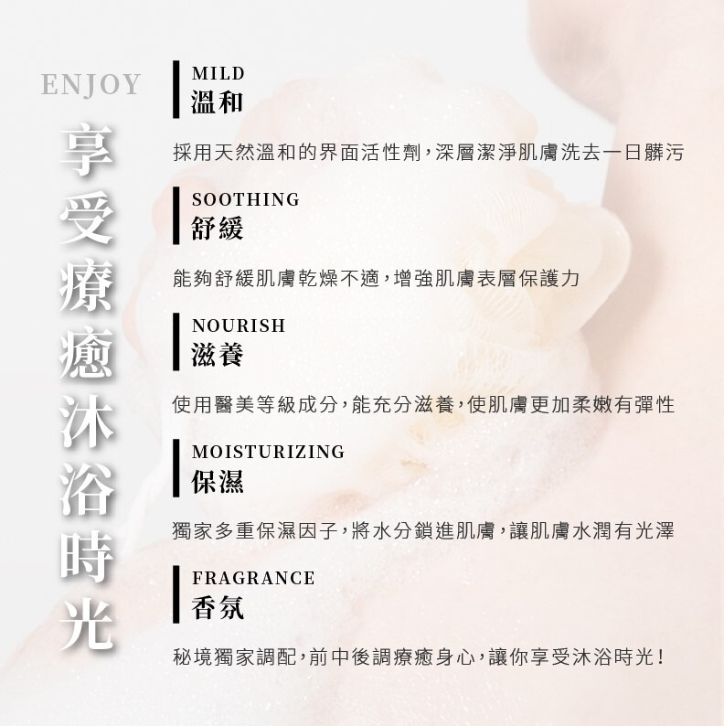 容量(重量):500ml/瓶 使用方法:取適量於掌心,加水搓揉起泡,塗抹於全身肌膚輕輕按摩,再以清水沖洗乾淨即可。 保存方法:請置於陰涼處,避免陽光直射。 製造日期:標示於外盒。 注意事項:外用產品,請勿吞食 製造商:忠泰國際生技股份有限公司 地址: 桃園市適竹區南崁路二段9號5樓之一 電話:03-222-9803