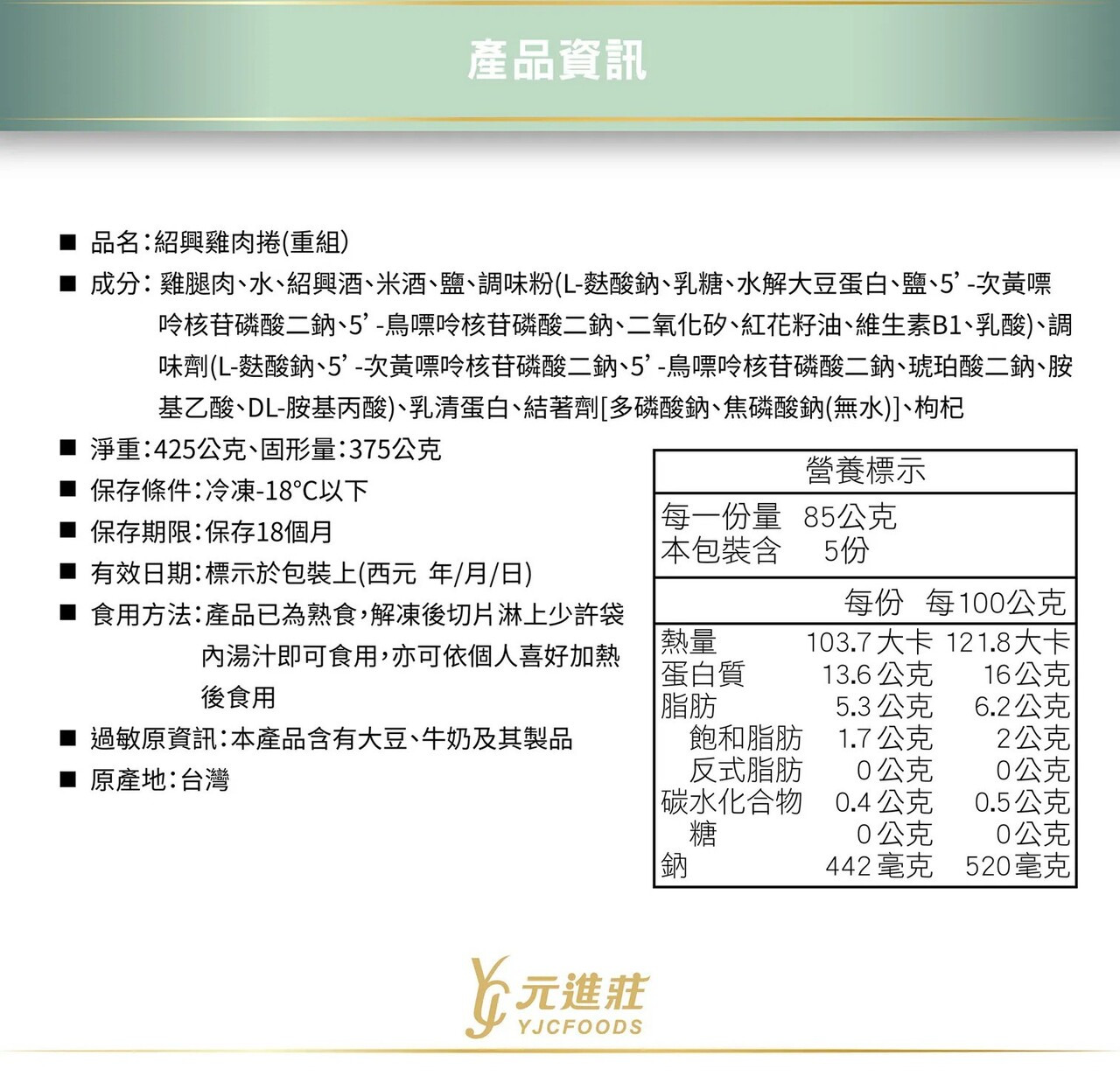 【元采珍饌】紹興雞肉捲(重組) 425g/捲