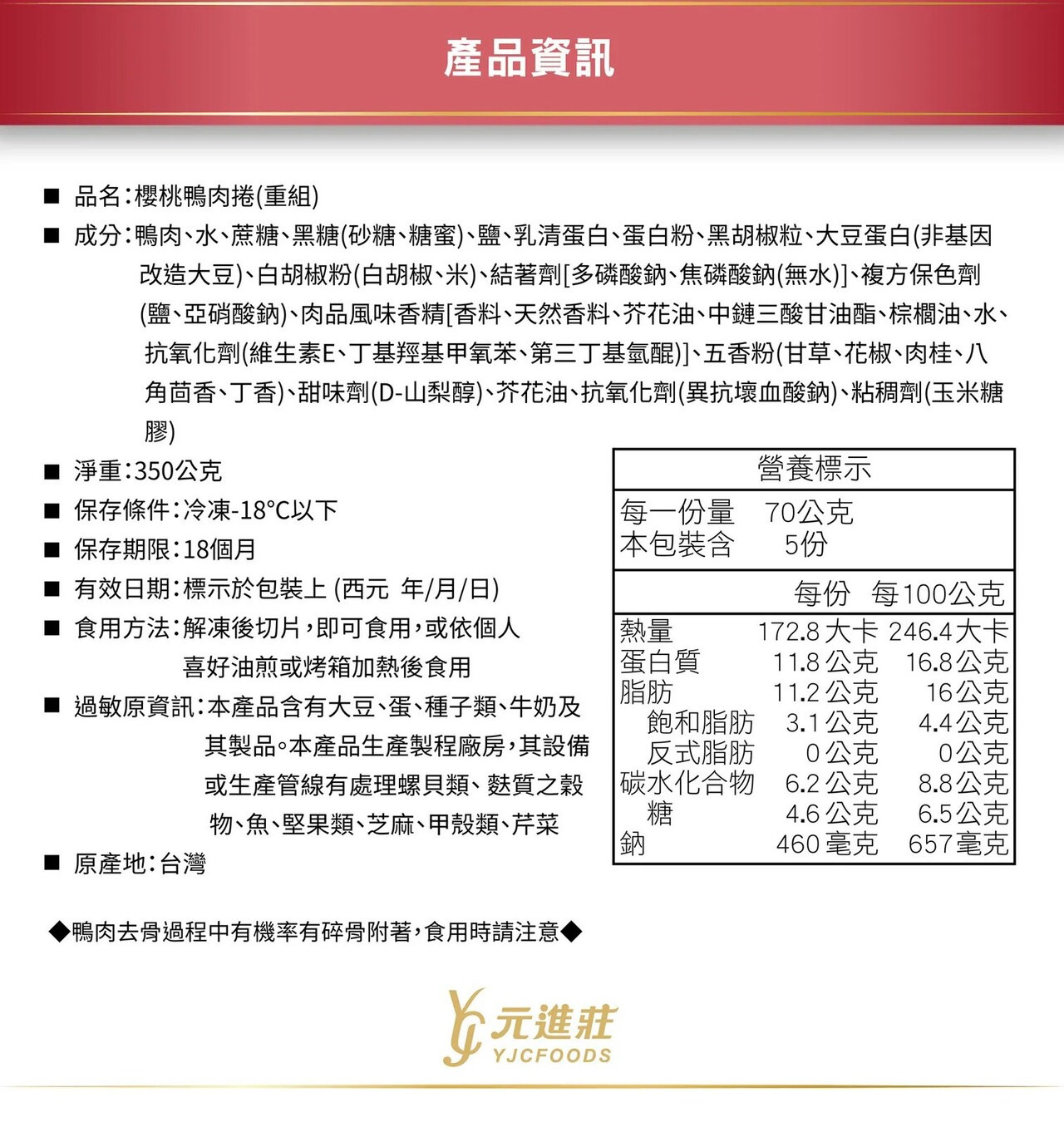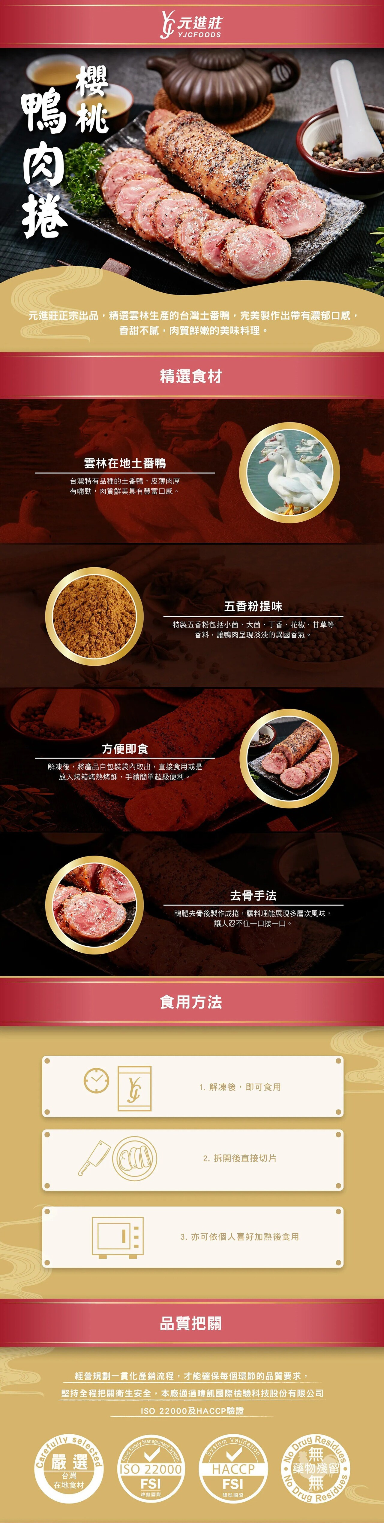 採用台灣番鴨,並經過精心手工滾壓去骨工藝,