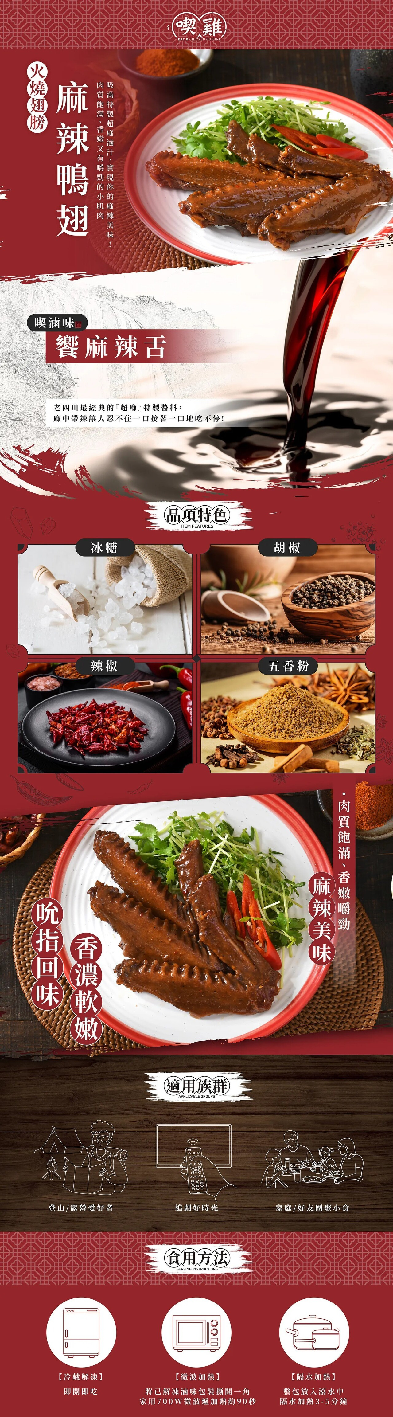 【麻辣鴨翅】肉質飽滿、香嫩又有嚼勁的小肌肉吸滿特製超麻滷汁,實現你的麻辣美味!