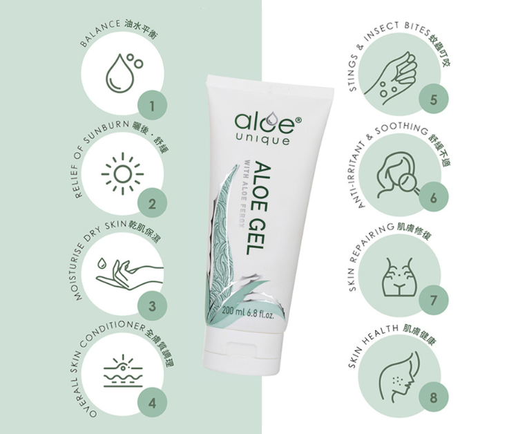 蘆薈凝膠:可用於日常保濕、妝前打底或肌膚不適時加強使用。